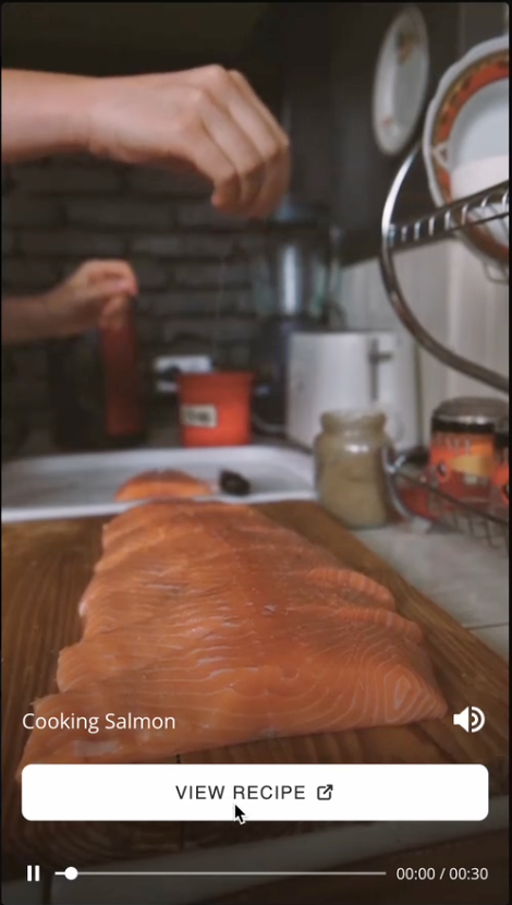Customize the button’s URL to let viewers take immediate actions, such as reading a related article, purchasing a featured product, or subscribing. For example, a food publisher might add a View Recipe click-to-action (CTA) button to a cooking video, guiding viewers straight to the full recipe page.
